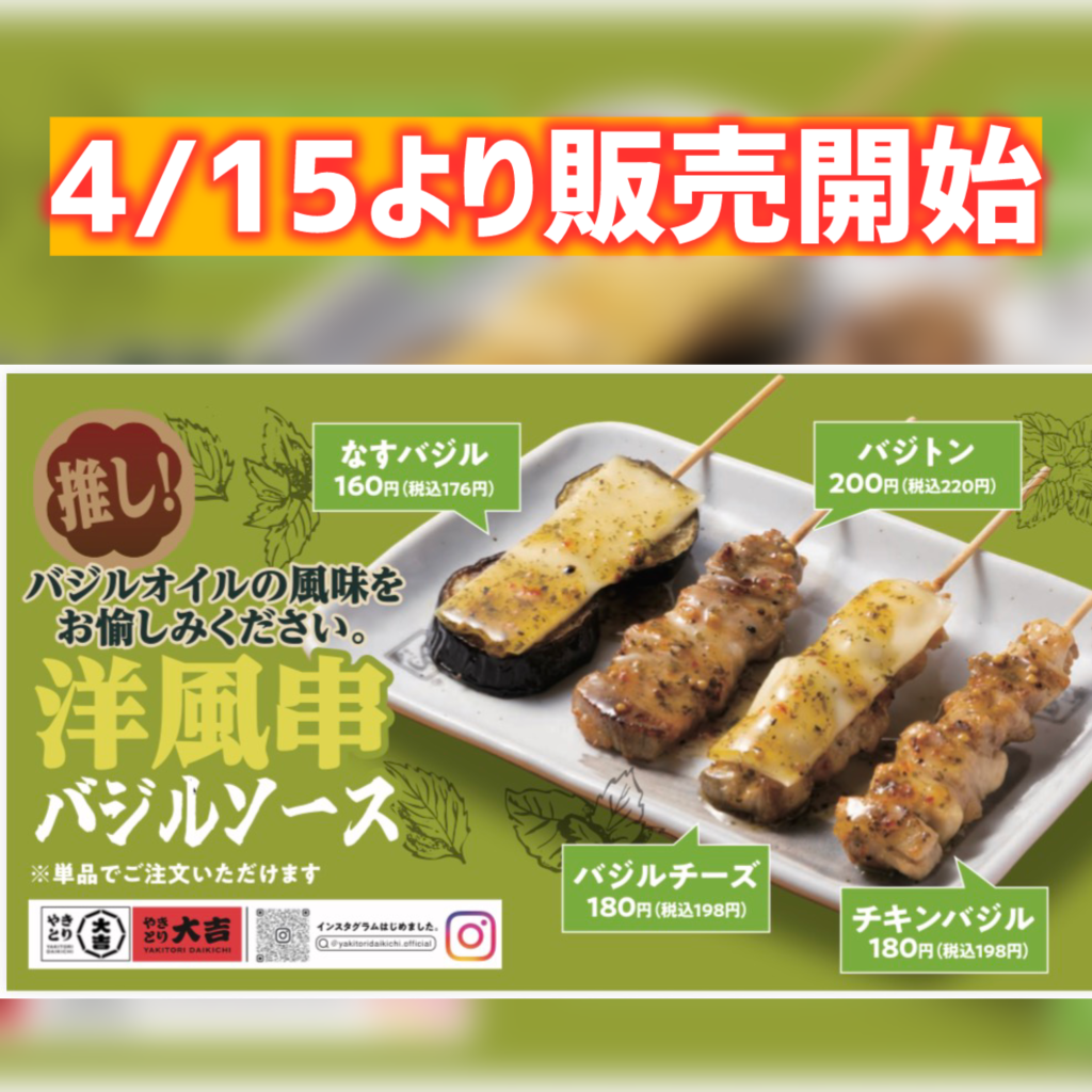 そして本日4/15(水)からは、バジルソースメニューが期間限定で復活!